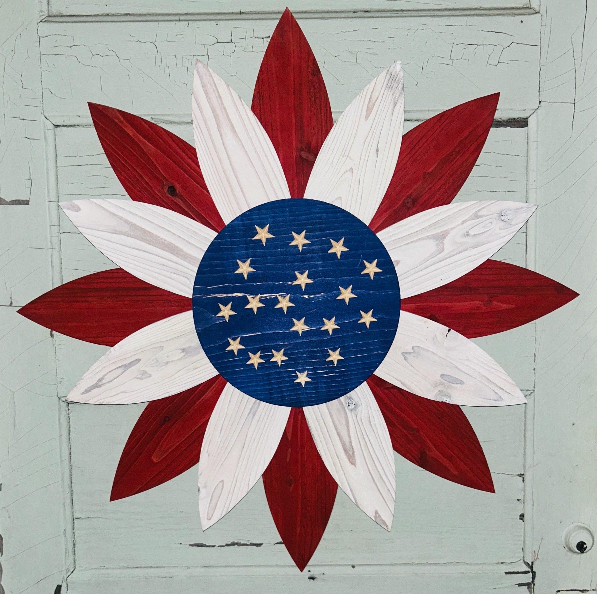 5. Handcrafted Patriotic Wooden Sunflower – Memorial & Veterans Day Gift