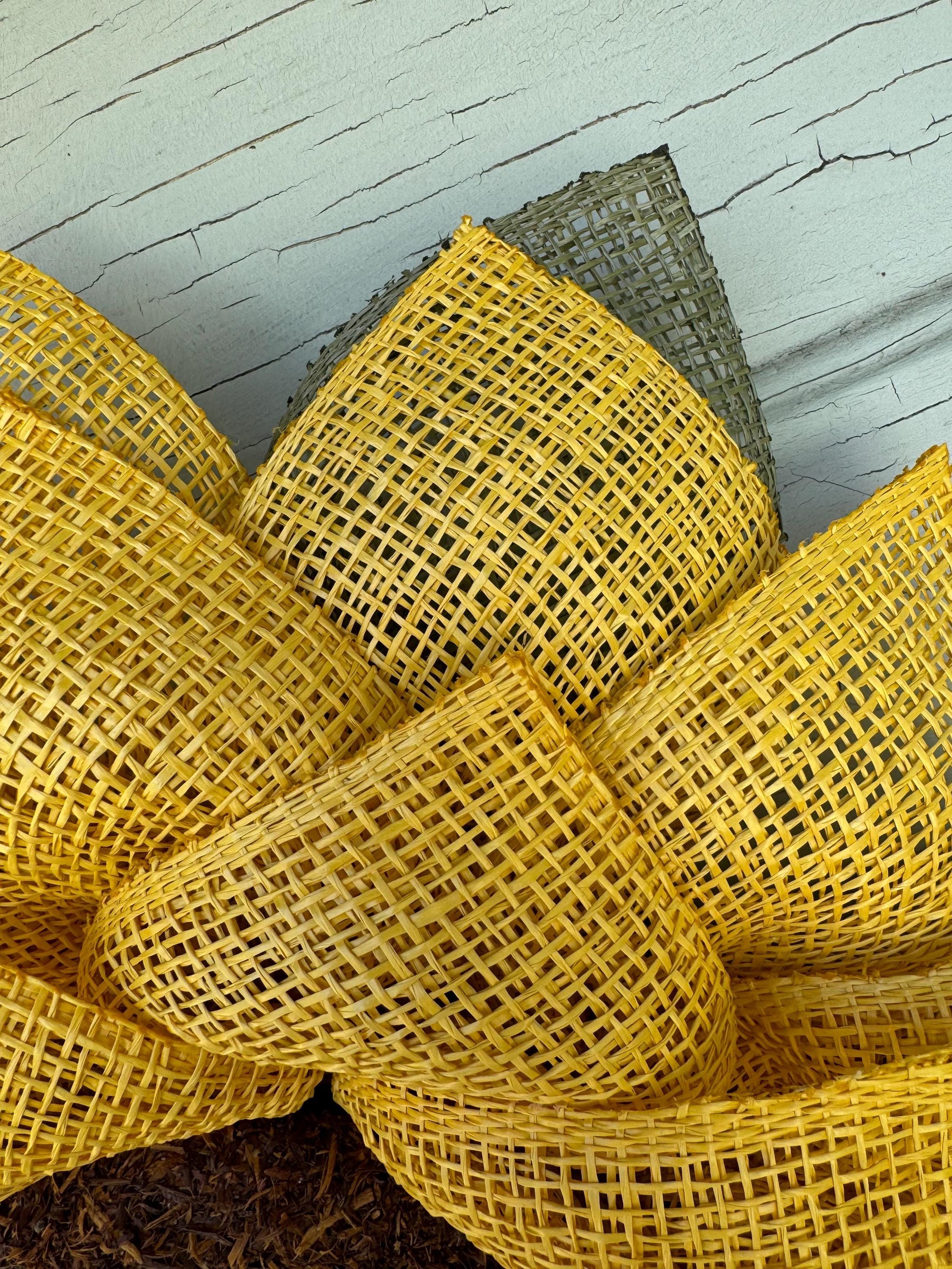 Brighten up your front door or living space with this stunning yellow burlap sunflower wreath! Handcrafted with meticulous attention to detail, this large floral wreath features vibrant yellow burlap petals arranged to create a beautiful sunflower design, complete with a rich brown center for a realistic look. The durable, high-quality materials ensure that this wreath will make a statement for years to come. Perfect for adding a touch of rustic farmhouse charm to your home decor, this wreath is ideal for both summer and fall seasons. Hang it on your front door, porch, or use it as a welcoming accent piece in your home.