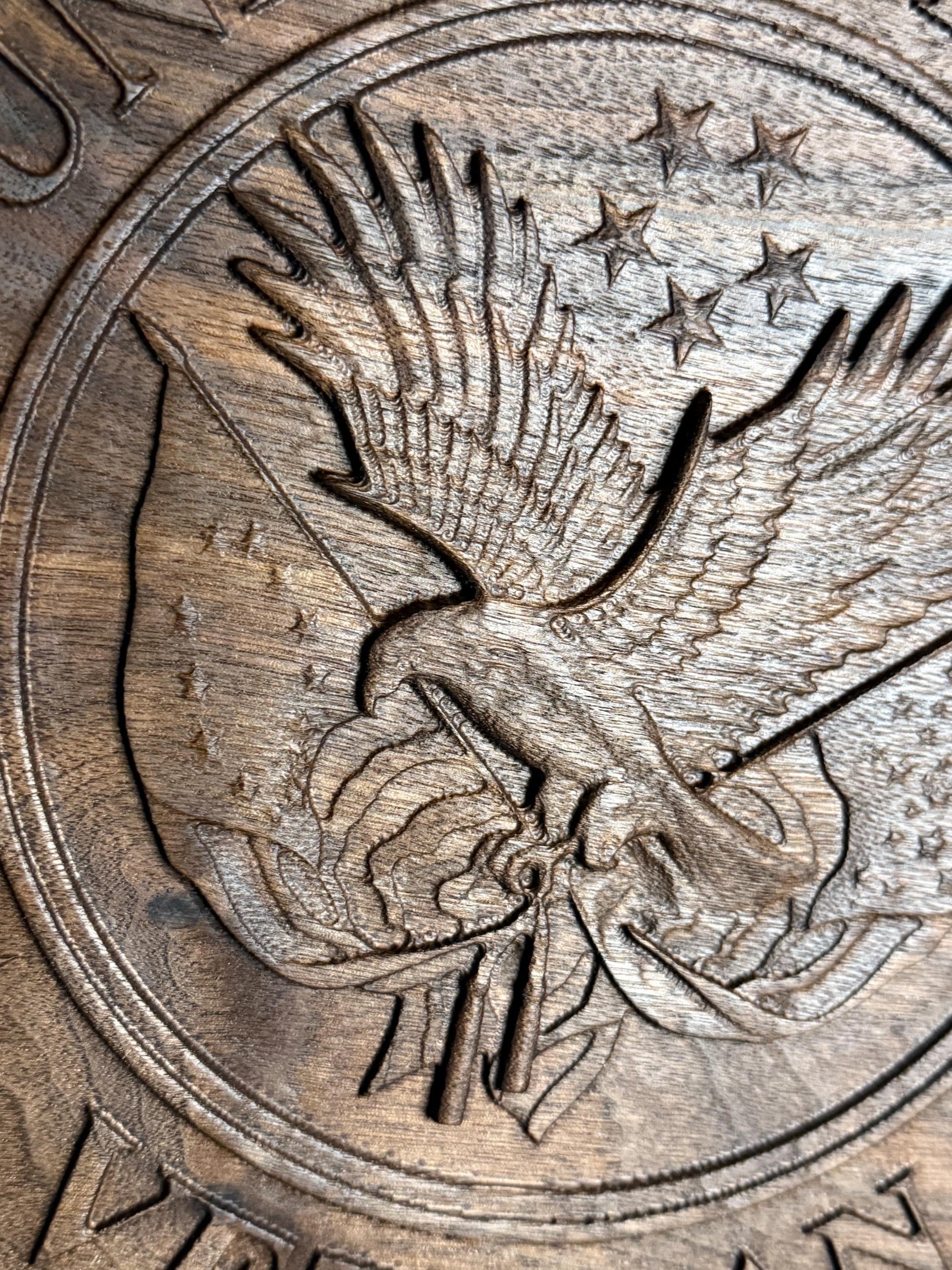 Honor the service and sacrifice of a U.S. military veteran with this beautifully handcrafted United States Veteran wooden plaque, made from premium walnut hardwood. Featuring a stunning 3D carving of a bald eagle clutching arrows and olive branches, this emblem radiates patriotism and pride.